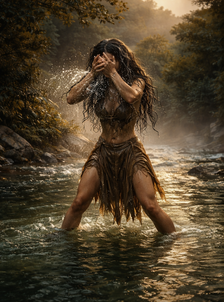 Stajala je raširenih nogu u hladnoj vodi koja joj je dopirala do koljena i šakom tjerala vodu na gore pokušavajući da iz sebe spere tragove posljednjeg grijeha. Zelena Lješnica joj je svojim hukom, osim ispiranja grijeha, donosila smirenje od bolova koji su joj razdirali utrobu. Njene kao ugljen crne i rasute lokne presijavale su se na jutarnjim zracima. Udahnula je duboko miris čiste prirode i nozdrve su joj se raširile. „Nekada sam i ja bila ovako čista, a onda me je dotakao on!“