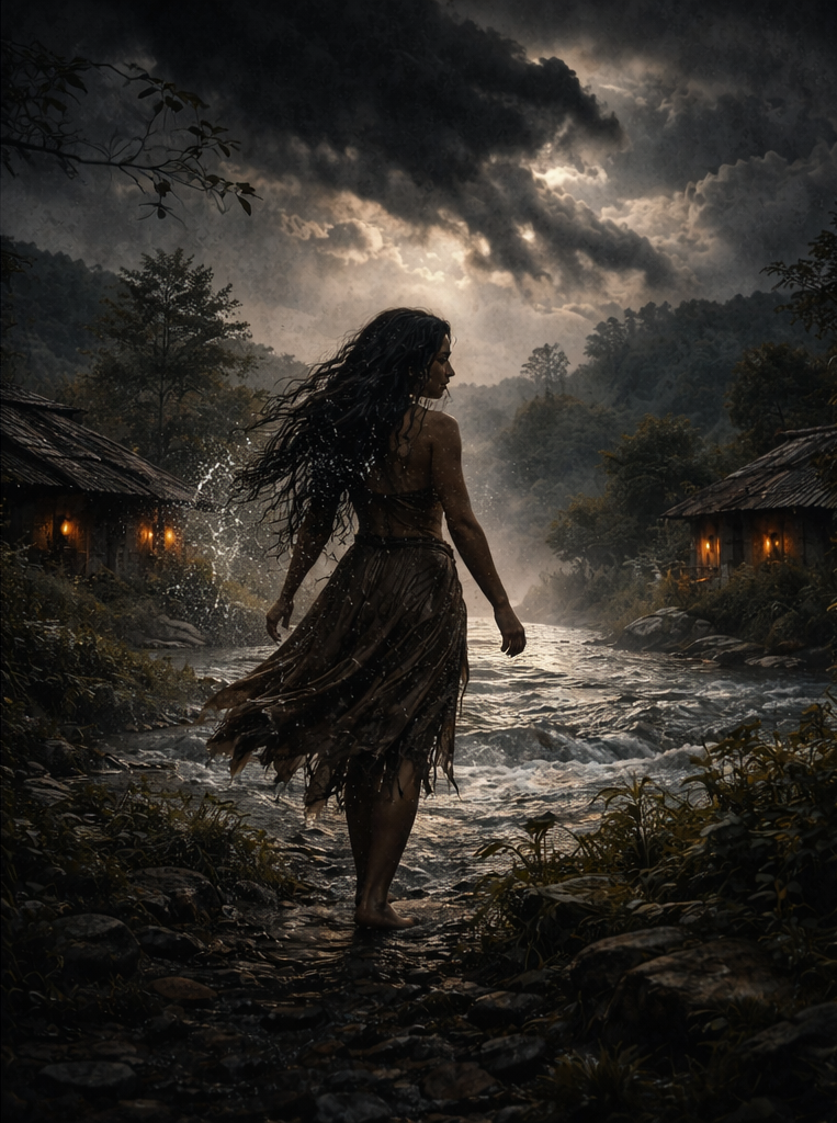 Nakon toga izašla je iz rijeke, popravila dronjke, razmještajući ih pažljivo po sebi tako da makar ravnomjerno prekriju djelove grudi, a onda je krenula prašnjavim putem ka gradu u nadi da će pronaći neki zalogaj hljeba za večeru.